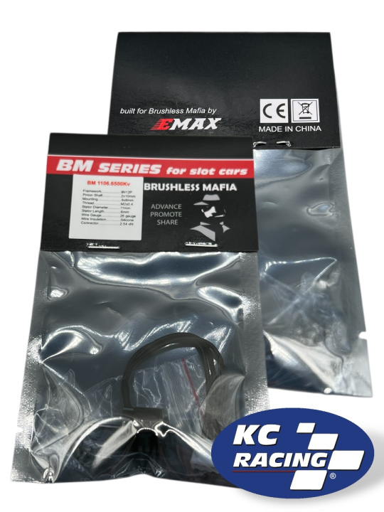 Join the brushless revolution in slot car racing. KC Racing has partnered with EMax, a world leading manufacturer of BLDC motors to develop an outrunner brushless motor specifically suited for slot car installations. Completely built and tested by EMax, this motor receives rigorous testing of the factory to insure quality and consistency.