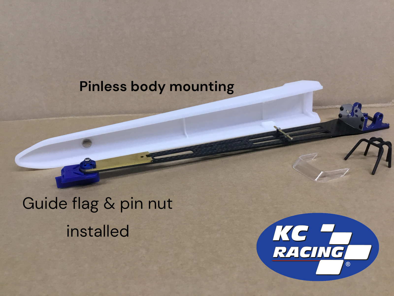 KC Racing guide flag and pin nut installed